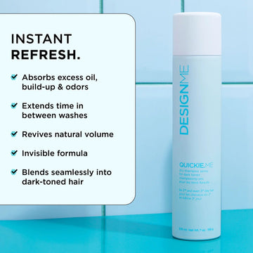 Dry shampoo for dark hair Experience the benefits of DESIGNME QUICKIE.ME Dry Shampoo Dark Tones. Say goodbye to oily, sweaty, and odorous hair as this invisible formula refreshes and revives with no residue or white cast. Ideal for dark hair...
