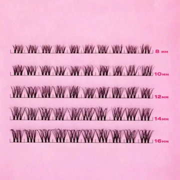 The Dose of Lashes Lemme-Lash Clusters DOL3 C Curl enhance lash length and volume with V-shaped flares for a fluttery, defined look. A thin, clear lash band adds flexibility and a lightweight feel to the lashes.