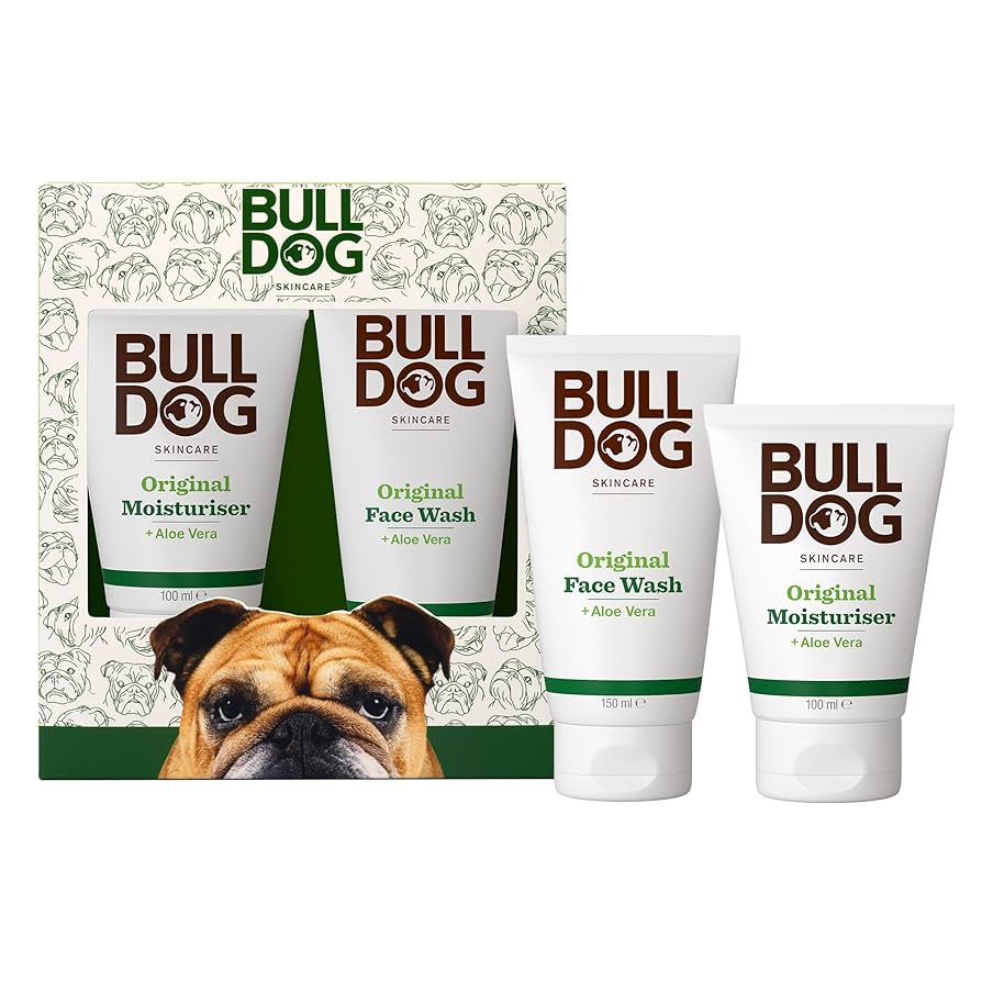 The Bulldog Original Skincare Duo features two top-rated products: the Original Moisturiser and the Original Face Wash, both crafted to enhance your skin’s health and appearance. The Original Moisturiser provides long-lasting hydration without a greasy finish, formulated with 96% naturally derived ingredients such as aloe vera, known for its calming and moisturizing effects. Complementing this, the Original Face Wash gently cleanses and refreshes dry to normal skin, containing 94% natural origin ingredients including soothing aloe vera. Both products support a balanced, comfortable skincare routine.