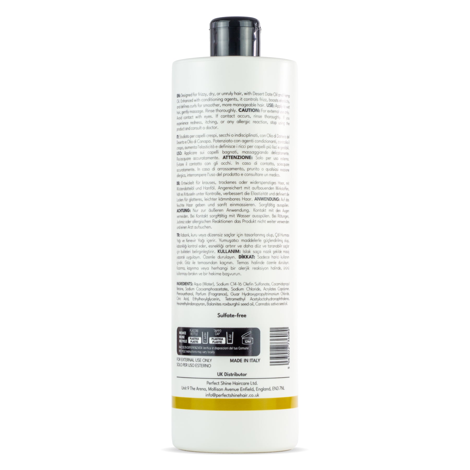 Formulated for frizzy, dry, and unruly hair, this shampoo combines Desert Date Oil and Hemp Oil with advanced conditioning agents. It reduces frizz, enhances hair elasticity, and shapes curls, resulting in smoother, more controlled hair.