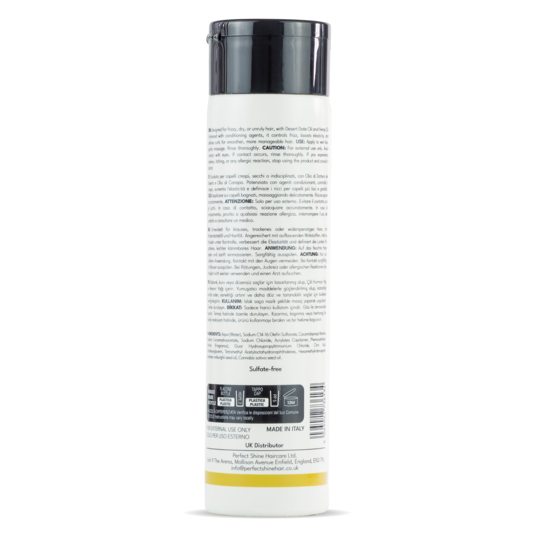 Formulated for frizzy, dry, and unruly hair, this shampoo combines Desert Date Oil and Hemp Oil with advanced conditioning agents. It reduces frizz, enhances hair elasticity, and shapes curls, resulting in smoother, more controlled hair.