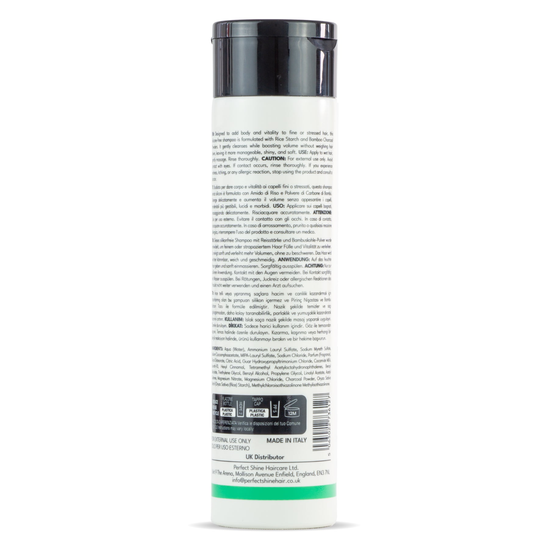 This silicone-free shampoo is designed to enhance volume and rejuvenate fine or fragile hair. Enriched with Rice Starch and Bamboo Charcoal Powders, it effectively cleanses the scalp while adding fullness, leaving hair soft, shiny, and effortlessly manageable without heaviness..