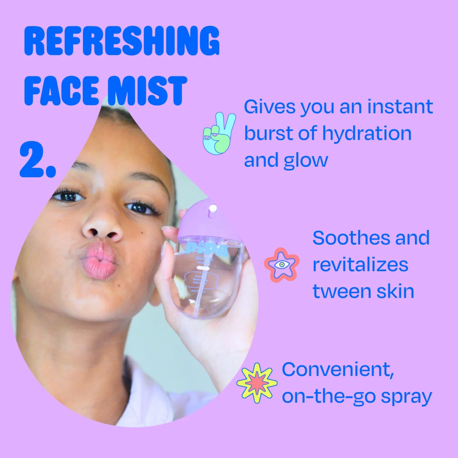 Deionized Water, Vegetable Glycerin, DL-Panthenol, Sodium PCA, GreenTea Extract, Niacinamide, Polysorbate 20, Organic Rose Water, Citric Acid, Sodium Benzoate, Potassium Sorbate.