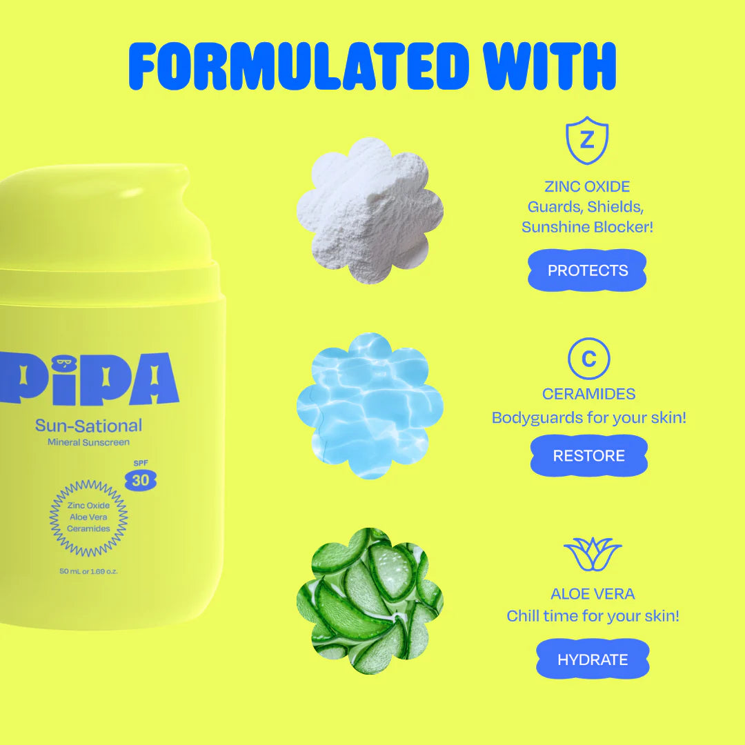 Protect young, delicate skin with Sun-Sational, a pure mineral sunscreen delivering broad-spectrum SPF 30 defence. This weightless formula vanishes into skin instantly, leaving zero white cast and a comfortable, non-greasy finish. Free from harsh chemicals and fragrance, it's been approved by dermatologists and paediatricians alike. Sun-Sational makes daily sun protection effortless—no compromise on feel or performance.