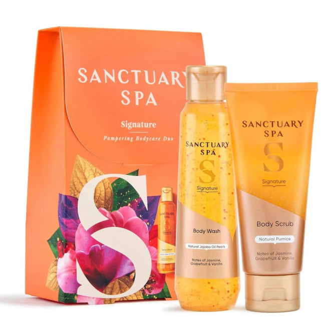 Elevate your spa routine with this carefully curated duo of Sanctuary’s treasured Signature products. Gently cleanse and exfoliate to reveal skin that is luxuriously smooth, fragranced with the enduring Signature scent, combining notes of Jasmine, Grapefruit, and Vanilla.