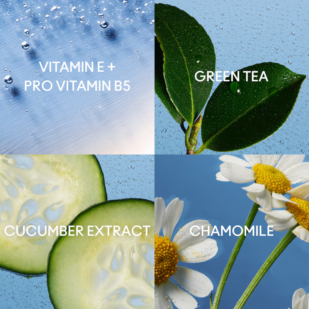 • Green Tea, Chamomile and Cucumber - to hydrate the skin.