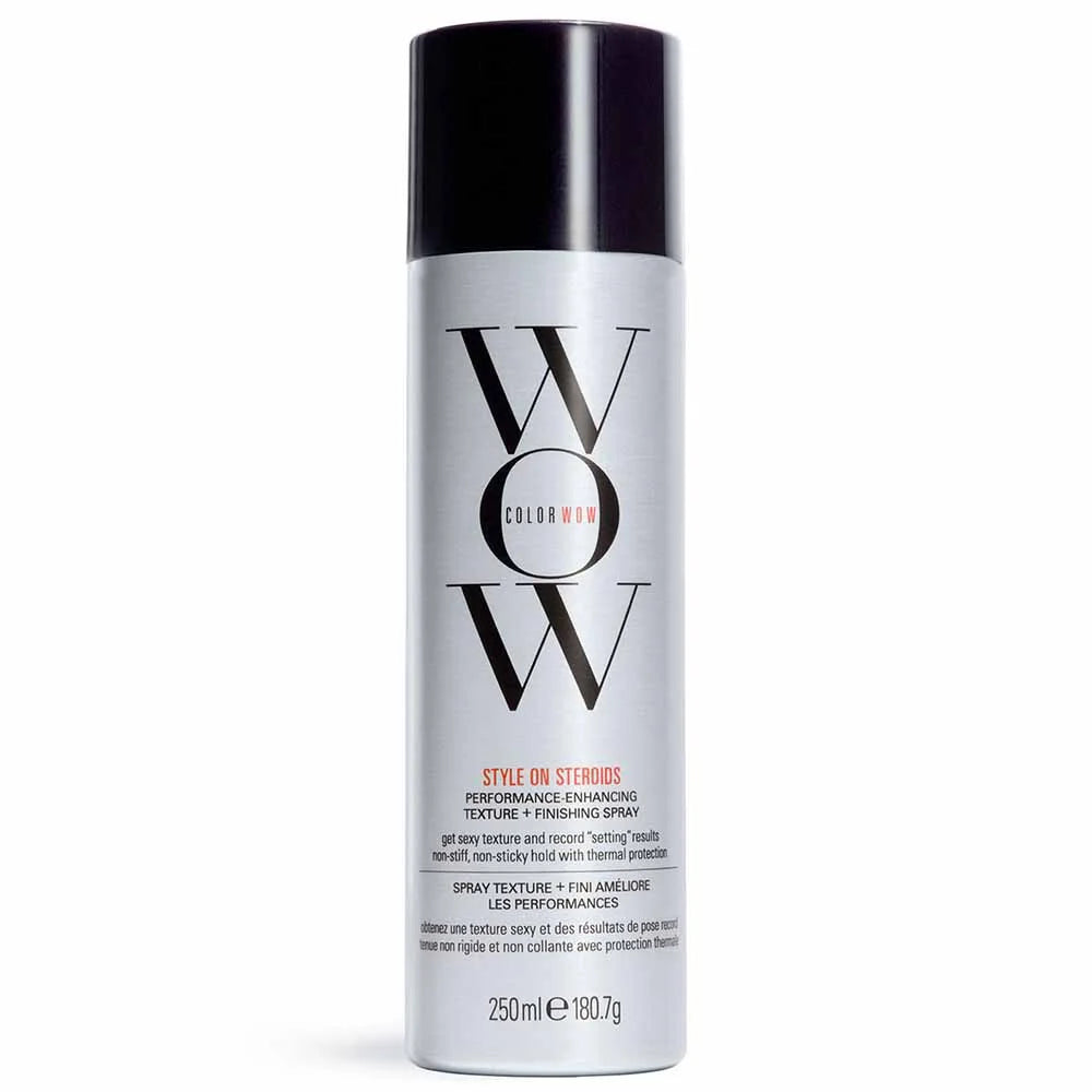 Color Wow’s Style on Steroids Performance Enhancing Texture Spray is designed for use on dry hair of all types. Enriched with micro-zeolites and elastomers, it delivers grip, texture, and a light finish that primes hair for styling while boosting long-lasting hold. The formula dries cleanly without any sticky or rigid feel, adding gentle volume and natural movement. It also protects hair color by shielding strands from pollutants, heat, and humidity that can cause dullness, ensuring vibrant, healthy-looking hair.